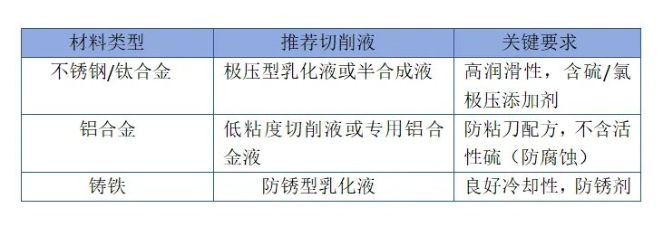 1、按材料選擇切削液類型
